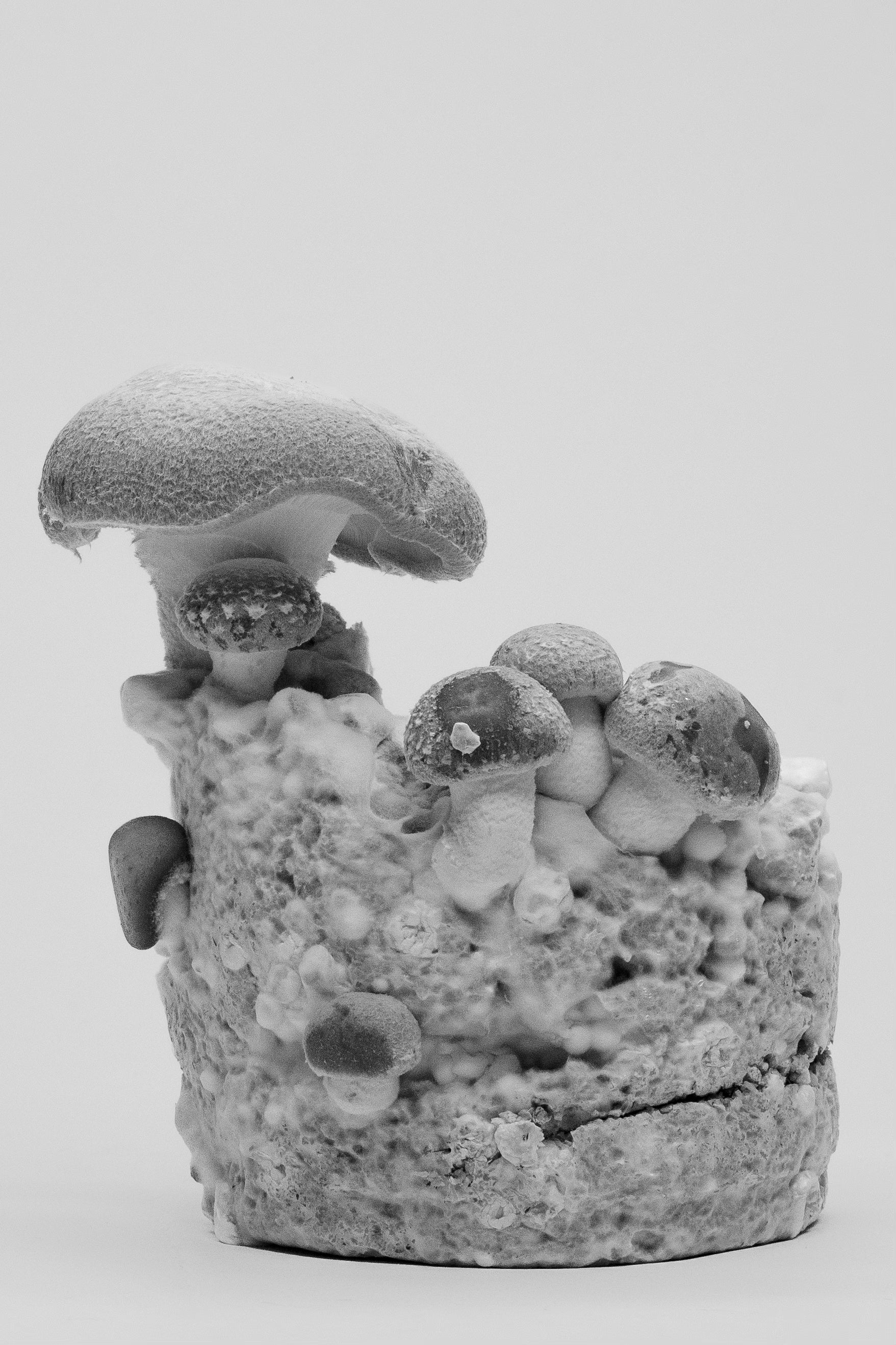 - Mycelium: Mycelbaserade tillskott är ofta enklare och snabbare att producera eftersom mycel kan odlas på ett kontrollerat substrat inomhus, och ingen hänsyn behöver tas till att trigga mycelnätverket att skjuta upp svampar. Man låter helt enkelt mycelet kolonisera materialet det växer på, och sedan använder man alltihop för att producera kosttillskott.
